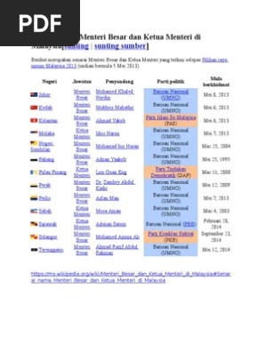 Senarai Nama Menteri Besar Dan Ketua Menteri Di Malaysia Pdf